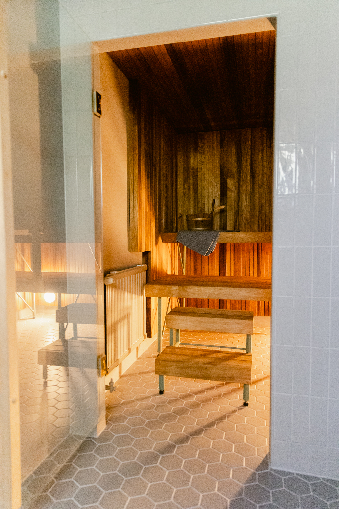Kellarikerroksen toiminnallisuutta parannettiin tilan uudelleen suunnittelun avulla. Saunan katselusuunta ja oven paikkaa siirrettiin. Yksi suihku vaihtui kahteen, ja niiden sijoituksessa huomioitiin erityisesti olemassa olevien viemäröintien sijainnit ja parannettiin valumavesien hallintaa. Näin tila sai paremman käytettävyyden ilman massiivisia teknisiä muutoksia.